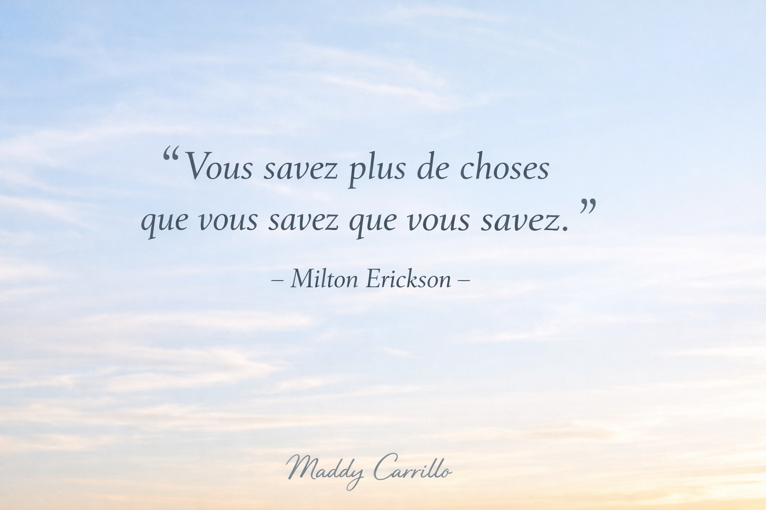 Il ne s’agit pas d’une séance d’hypnose « miracle », mais d’un cheminement structuré, respectueux de votre rythme et de votre singularité.
